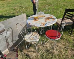METAL PATIO TABLES AND CHAIRS