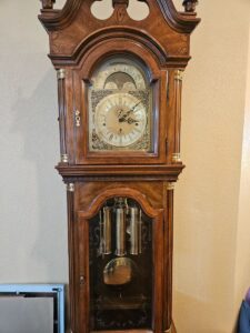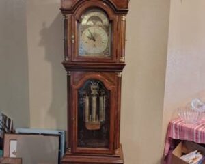 GRANDFATHER CLOCK-GORGEOUS – CHINA CABINET – ROUND DINING TABLE – LEATHER RECLINER – POLANSKI BEDROOM SUITE- WOW!!!! – WASHER AND DRYER – LAWYERS STYLE BOOKCASE – CHESTS DRESSERS NIGHT STANDS – GLASSWARE – BOOKS – QUILTS – CHRISTMAS – TOOLS – LOTS AND LOTS HERE!!!!